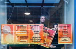 Posters with statements by renowned Swiss writers against the enforced implementation of deportation laws in Switzerland