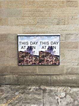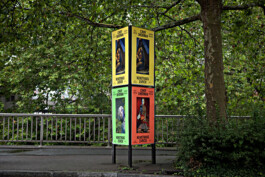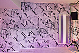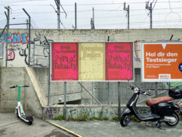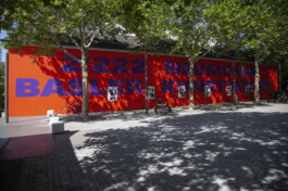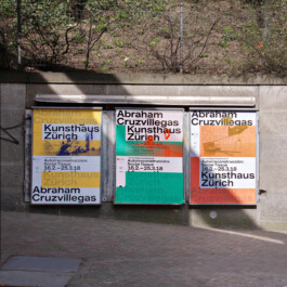 Back wall of Kunsthalle Basel celebrating 180 years of Basler Kunstverein. Mural and six series of six posters each